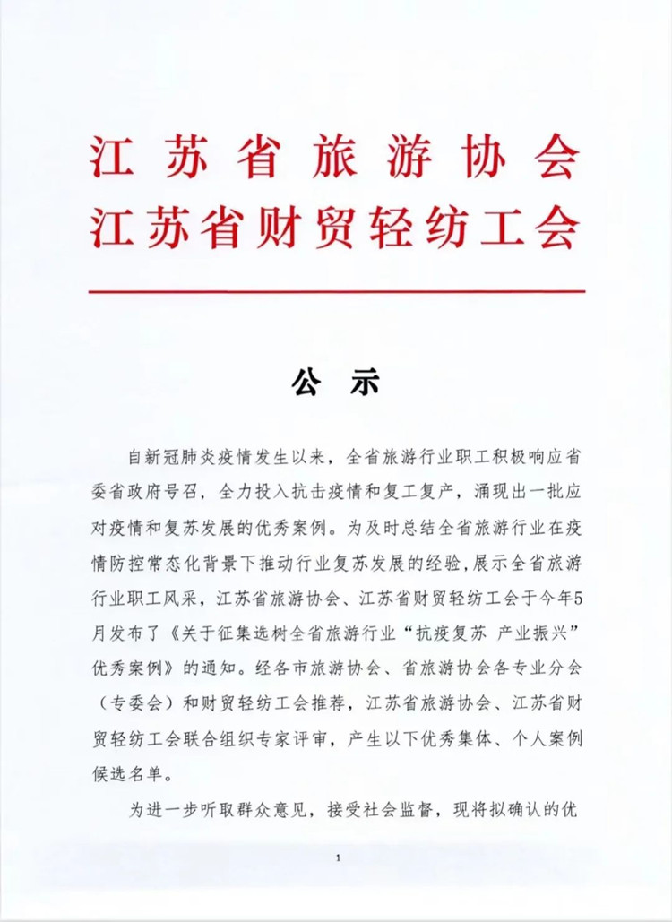 全省旅游行業“抗疫復蘇 產業振興” 案例公示